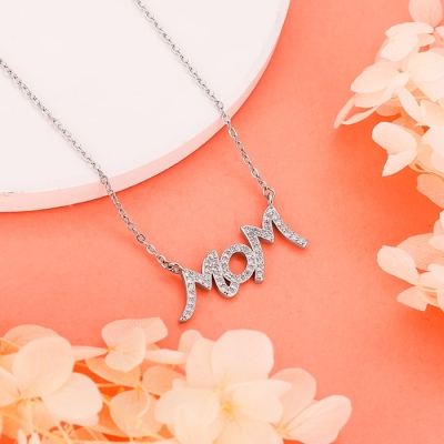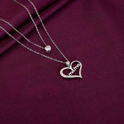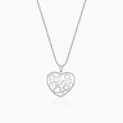 Silver MAMA Heart Pendant with Link Chain