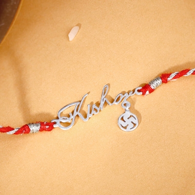 Silver Personalised Eternal Swastik Rakhi