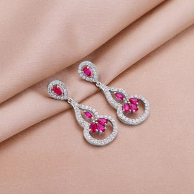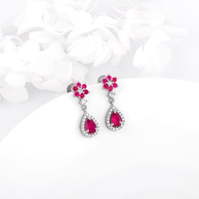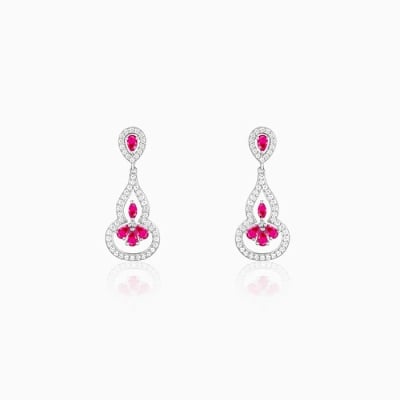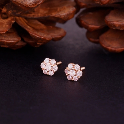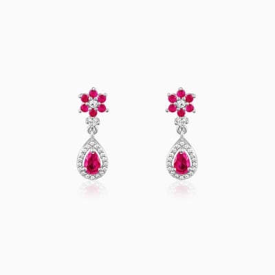 Silver Pink Flower Mini Drop Earrings