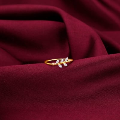Gold Delicate Leaves Diamond Ring