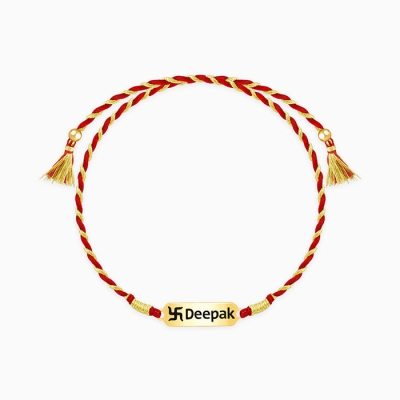 Golden Personalised Engraved Swastik Rakhi