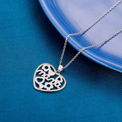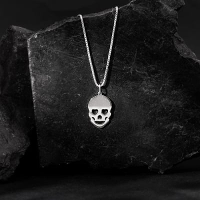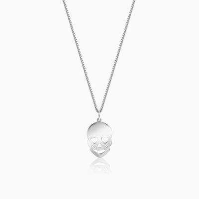 Silver Love Skull Pendant with Link Chain For Him