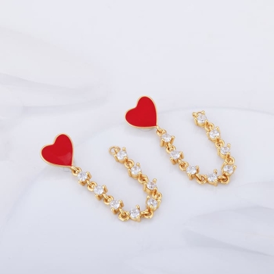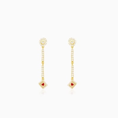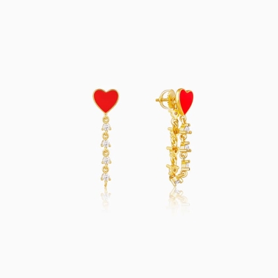 Golden Heart Chain Dangling Earrings