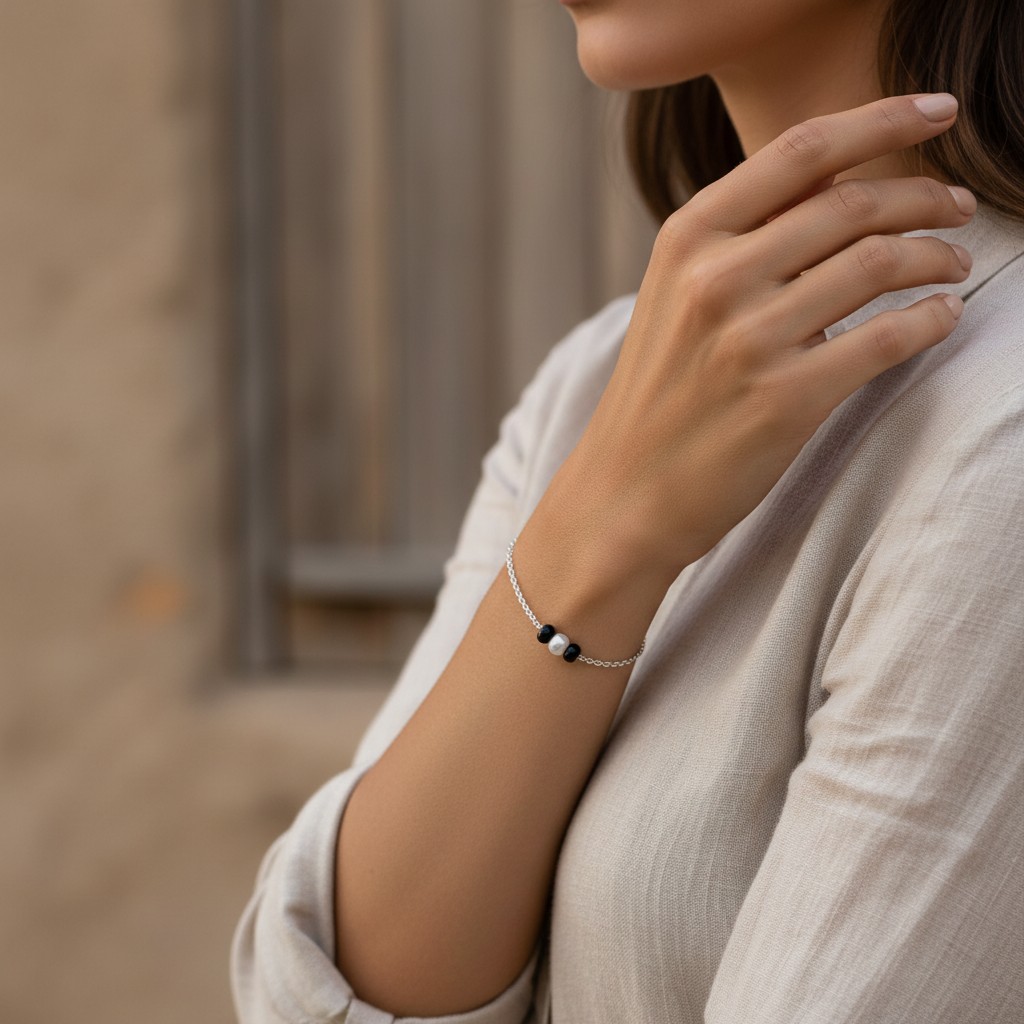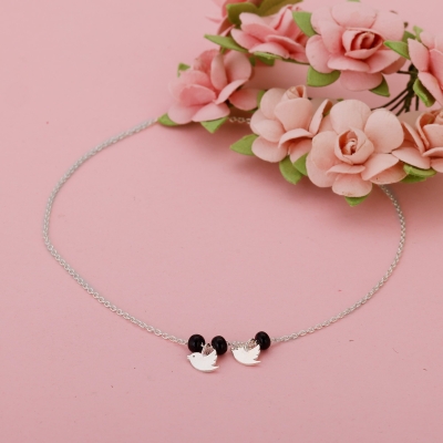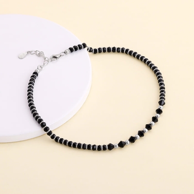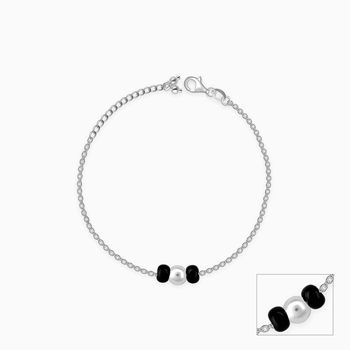 Silver Swaying Shadows Black Beads Anklet