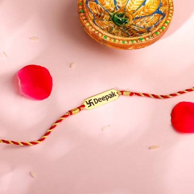 Rose Gold Personalised Eternal Swastik Rakhi