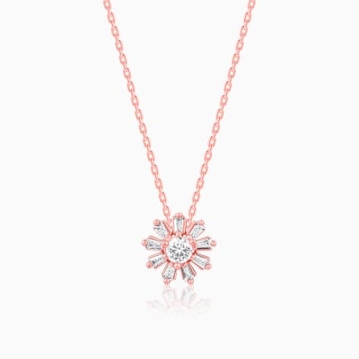 Rose Gold Baguette Flower Pendant with Link Chain