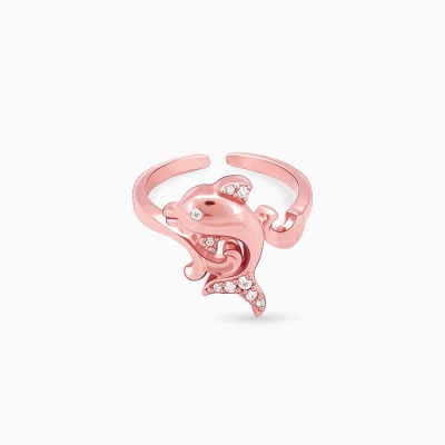 Rose Gold Diving Beluga Whale Ring