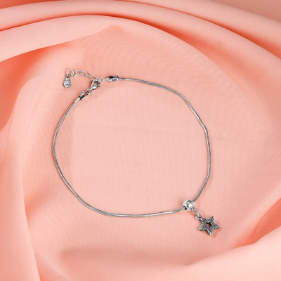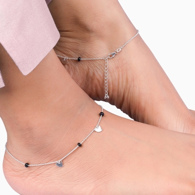 Silver Barefoot Black Beads Anklet